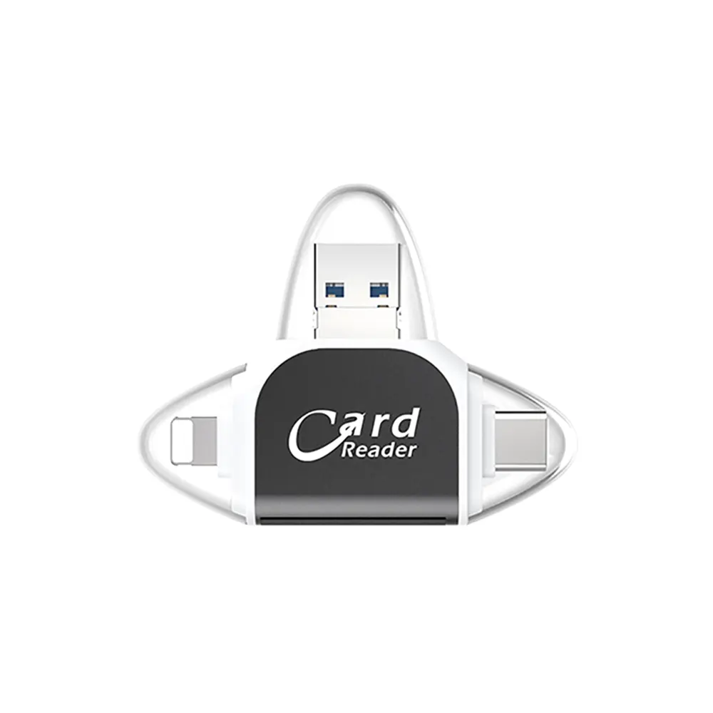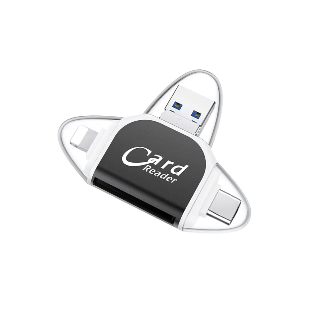 The 4 in1 Card Reader Type C + Lightning offers versatile connectivity for your devices. Easily read and transfer data from SD and microSD cards to iPhones, iPads, and Type C devices. Compact, fast, and reliable for personal and professional use.