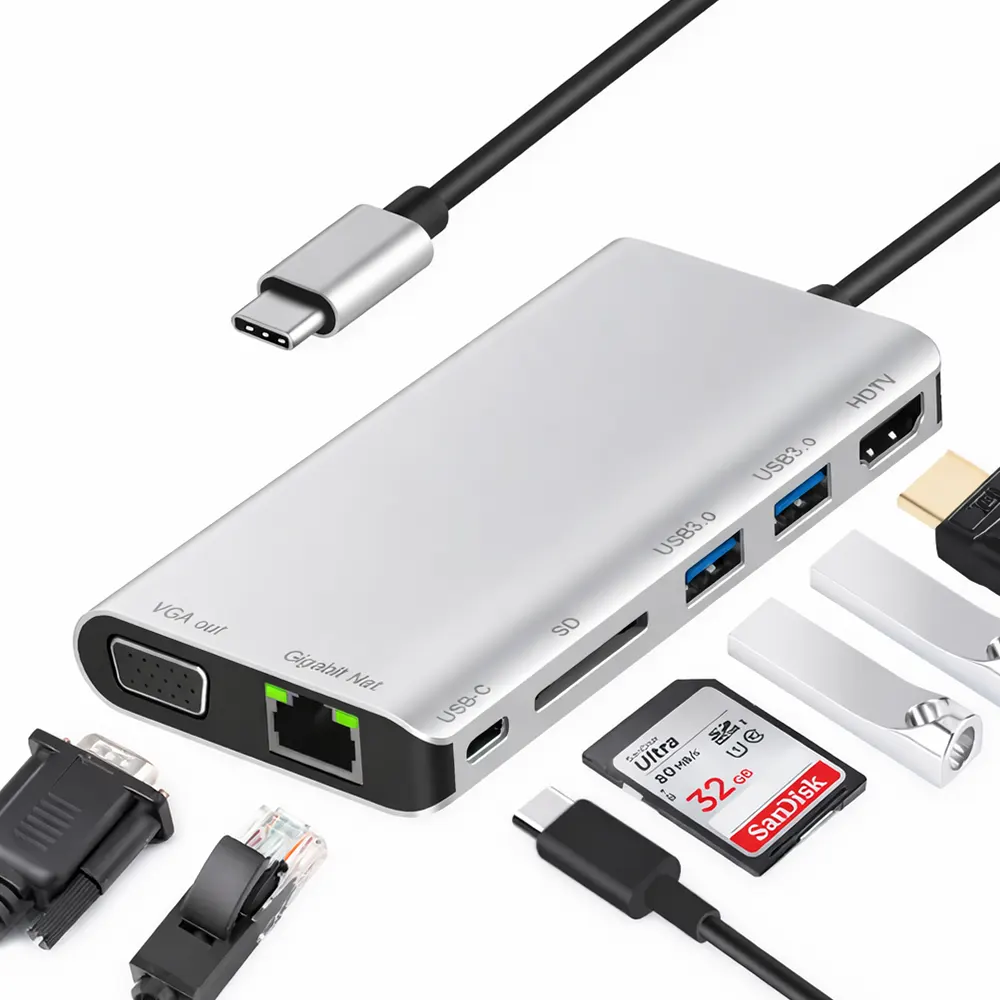 8 in 1 Multi-Function USB C Dock Station Hub