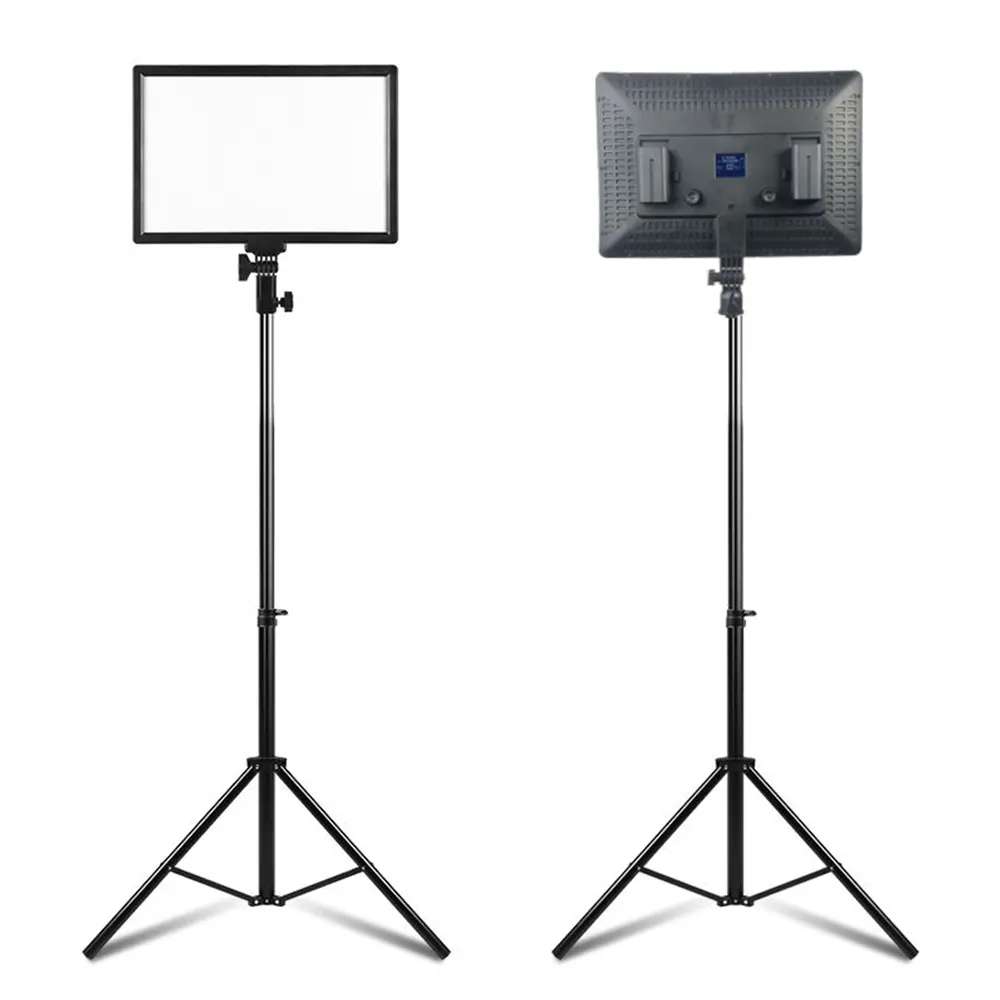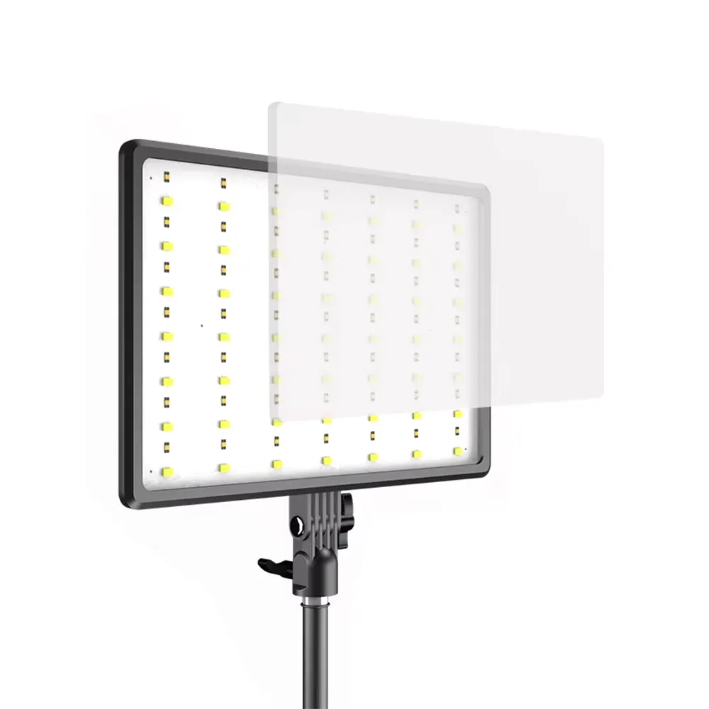 Set up the adjustable stand and secure the LED panel on top.
