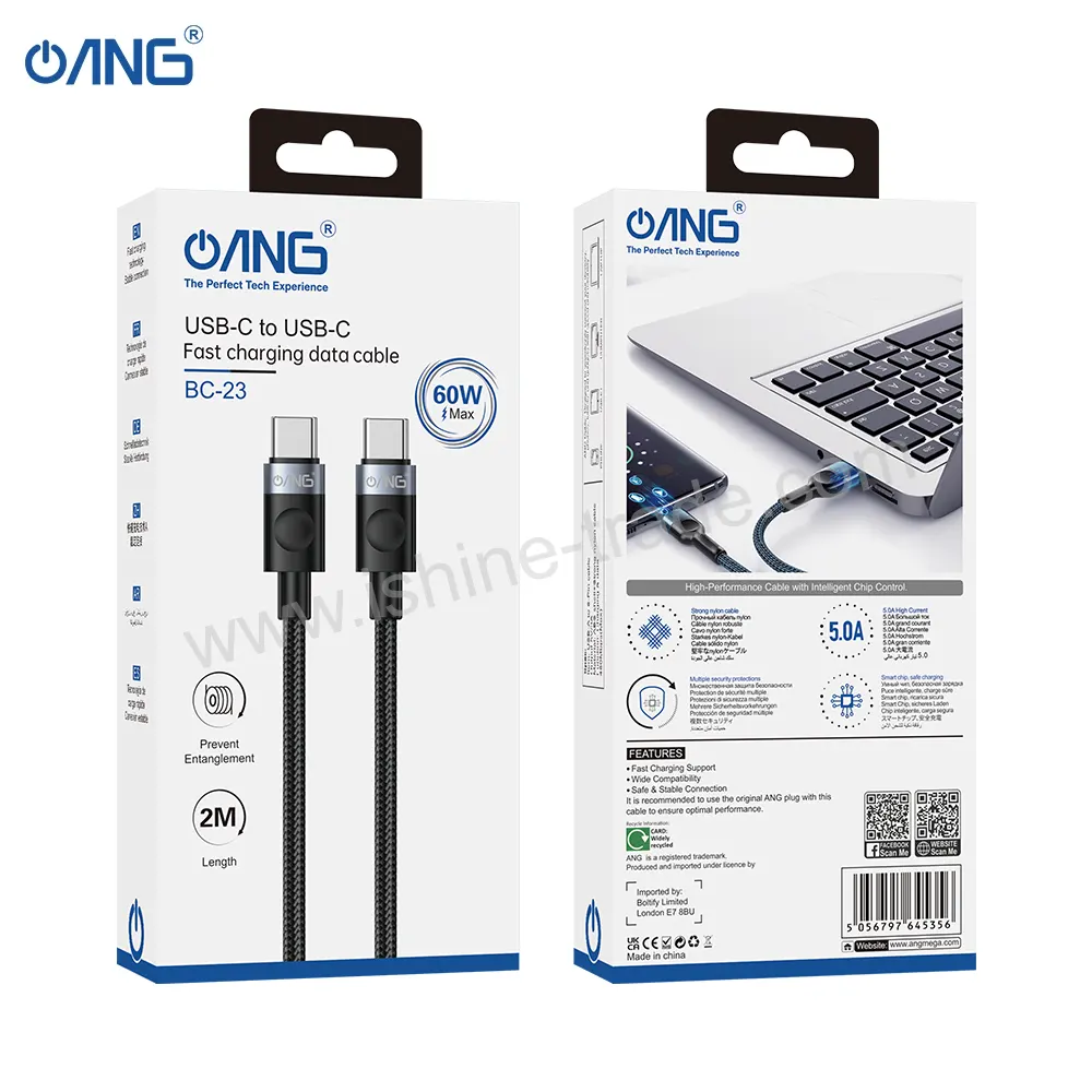 As a trusted Wholesale Mobile Phone Accessories Supplier in UK, we provide premium products like the ANG BC05 Type C to Type C 100W Braided Fast Charging Cable – 2 Meter, offering ultra-fast charging, durable design, and reliable performance for users and resellers.