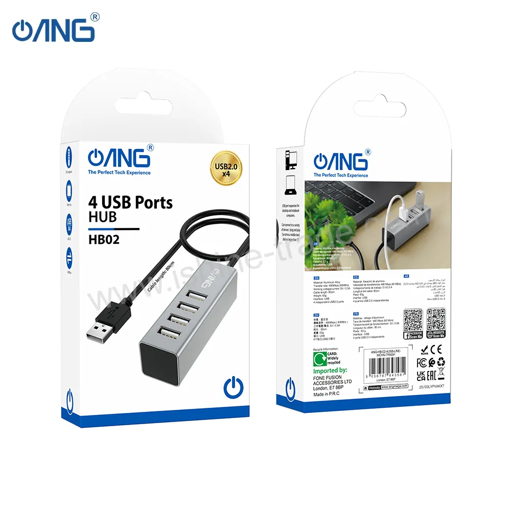 As a trusted Wholesale Mobile Phone Accessories Supplier in UKÂ we provide reliable products like the ANG HB02 4 USB Ports Hub Adapter offering convenience efficiency and durability for both consumers and resellers.