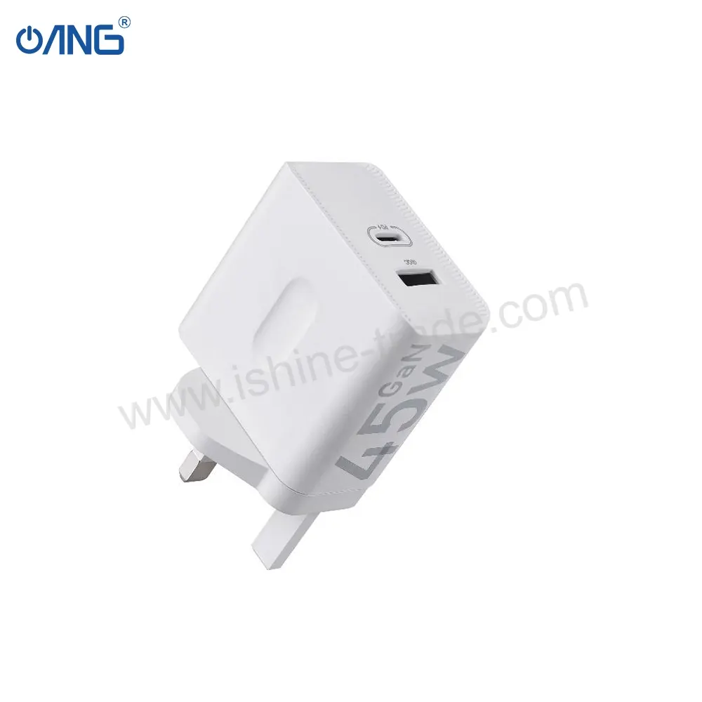 The ANG TB‑TCS 45W PD GaN Turbo Fast Charger from iShine Trade is a premium‐level wall charger built to deliver high speed charging. With 45 W output using Power Delivery PD technology and advanced GaN Gallium Nitride components this charger enables you to power smartphones tablets and compatible laptops quickly and efficiently. It’s ideal for users who demand performance compact size and versatile device support.