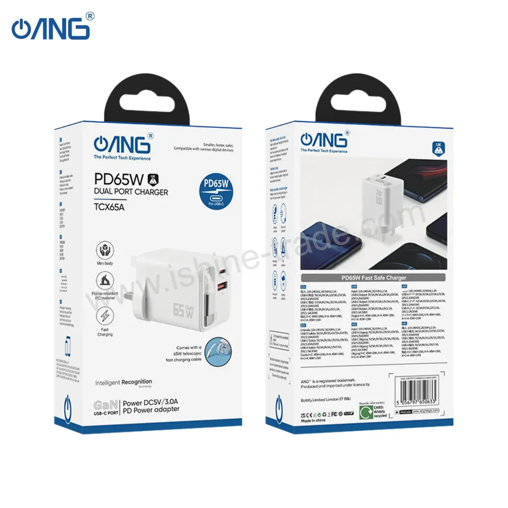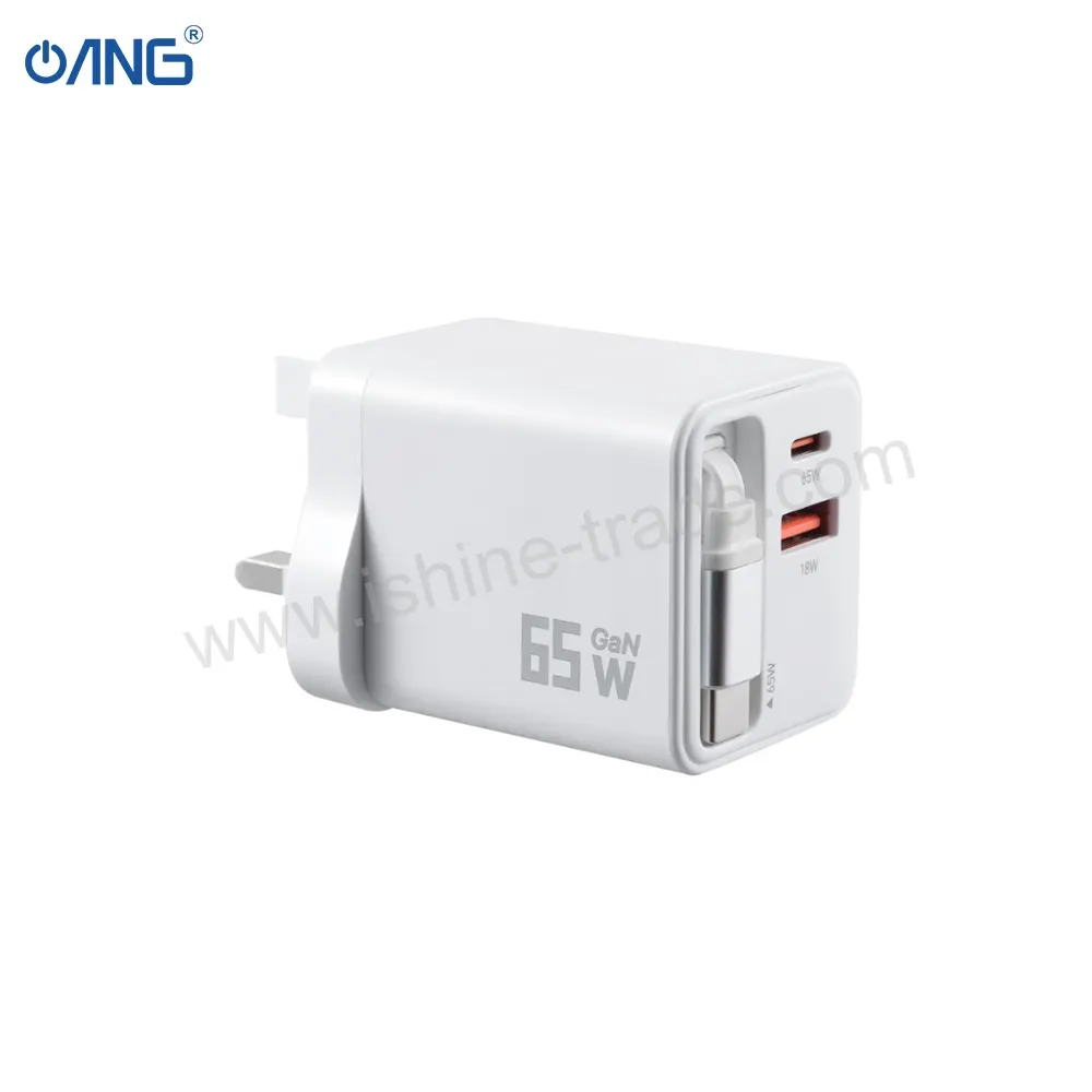 ANG TCX65A PD65W Dual Port GaN Charger With Built In Type C Cable