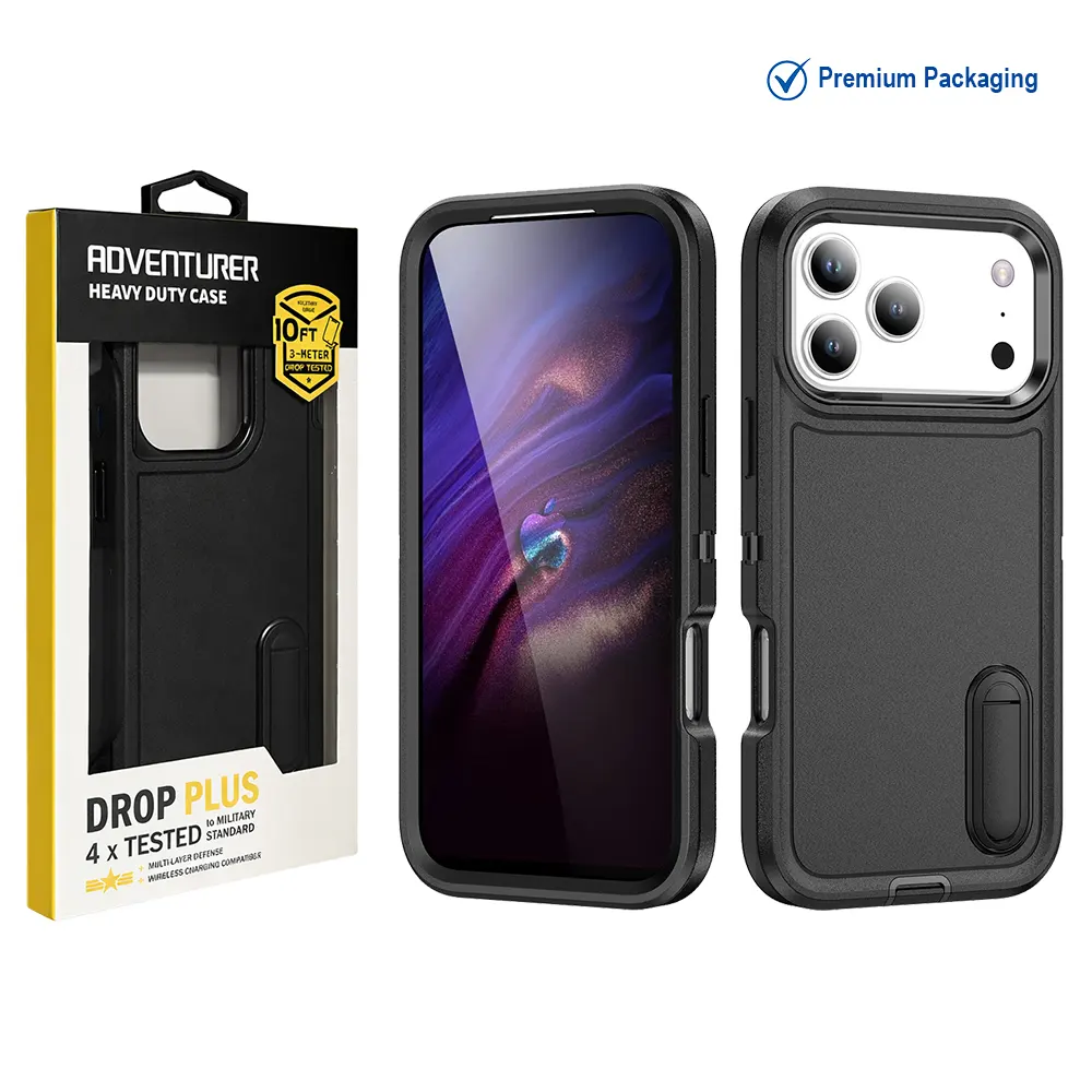 The Defender Case with Stand Protective for iPhone 17 Pro from iShine Trade is designed to provide rugged protection and convenience. Featuring a multi-layered construction, this case shields your device from drops, scratches, and other impacts while offering a built-in stand for comfortable hands-free viewing.