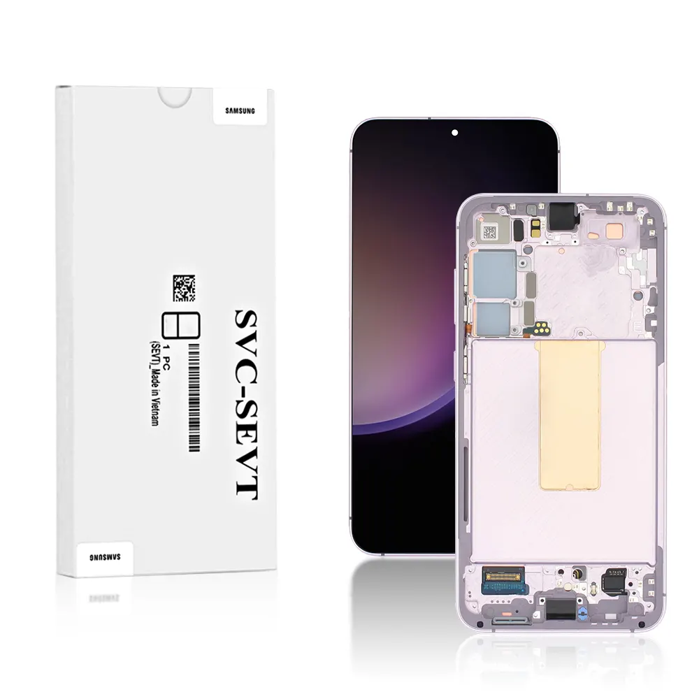 The Genuine LCD Screen For Samsung Galaxy S23 Plus (S916B) With Frame and Touchpad – Lavender (GH82-30476D) from iShine Trade is an ideal replacement screen to restore your Samsung Galaxy S23 Plus to its original display quality. This high-quality replacement ensures vibrant colors, smooth touch sensitivity, and a perfect fit, making it perfect for professional repairs and DIY enthusiasts.