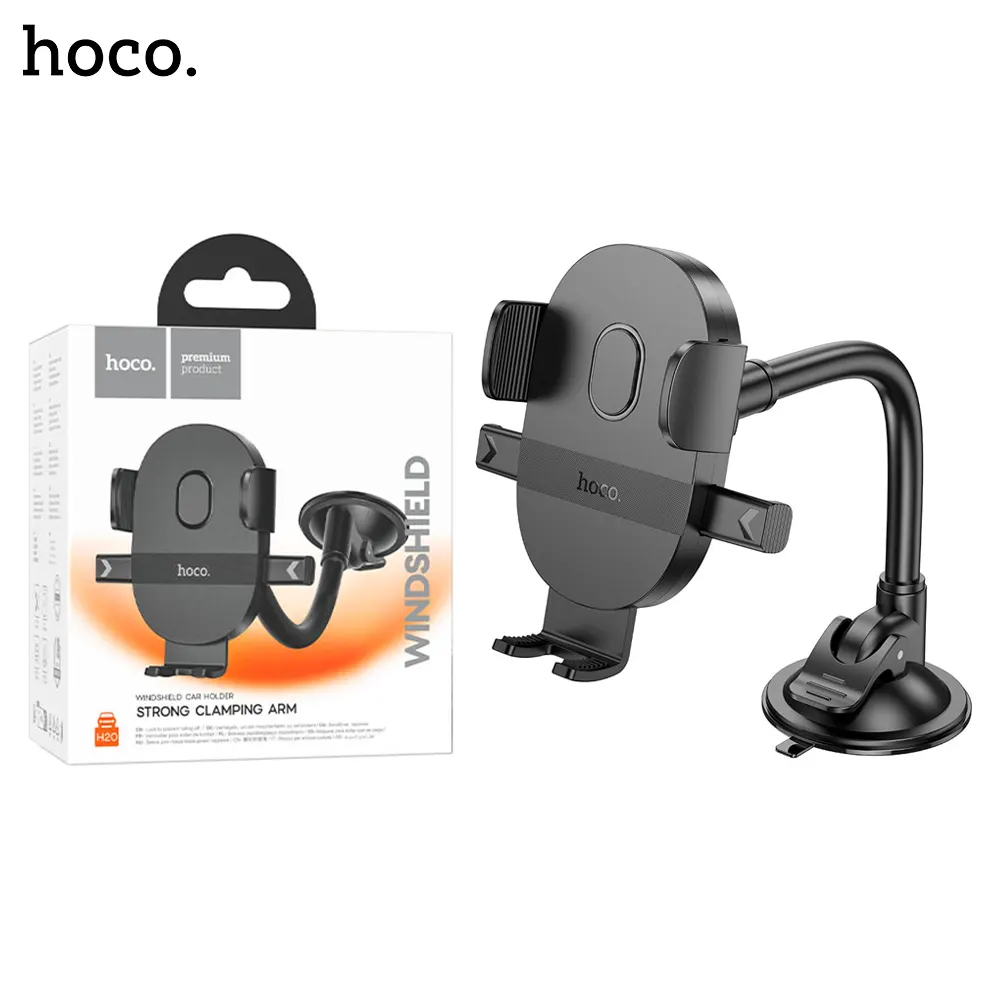 The HOCO H20 Mighty One Button Windshield Car Phone Holder from iShine Trade provides a reliable and convenient way to mount your phone in your vehicle. With its one-button operation and strong suction, it ensures your phone stays secure for hands-free use while driving.