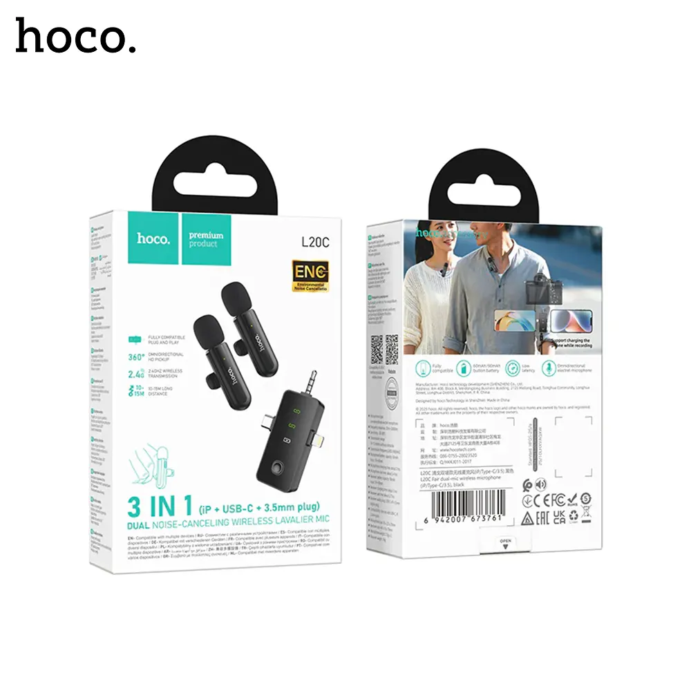 HOCO L20C Fair Dual Mic Wireless Microphone Lightning + USB C (3.5mm)