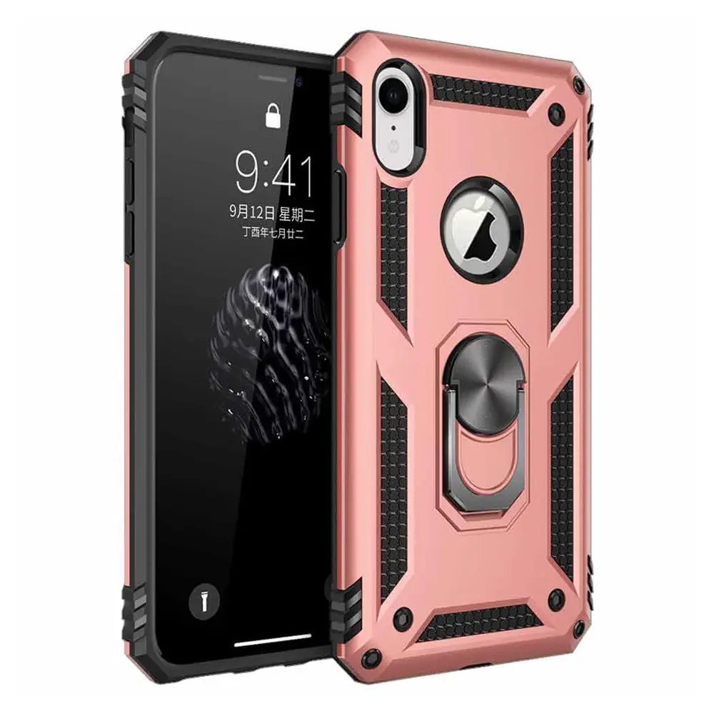 The Slim Shockproof Ring Armor Case for iPhone XR offers robust protection with a sleek, slim profile. This case is designed to safeguard your device against drops, bumps, and everyday wear while maintaining a lightweight, easy-to-handle design. Featuring a built-in ring stand, it also adds functionality for hands-free viewing and enhanced grip.