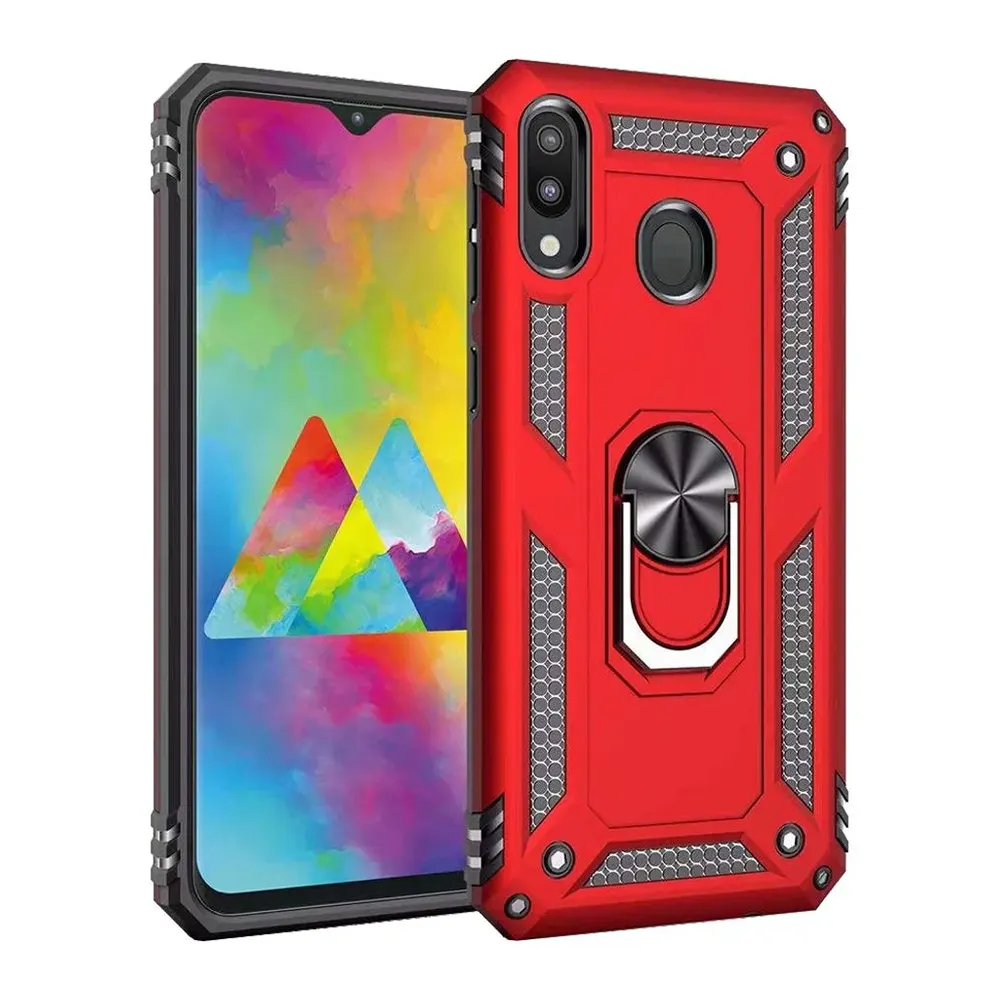 The Slim Shockproof Ring Armor Stand Phone Case for Samsung Galaxy A20 from iShine Trade offers excellent protection and practicality. This case features shockproof technology and a built-in ring stand, combining durability and convenience to ensure your Samsung Galaxy A20 stays safe while offering hands-free viewing.