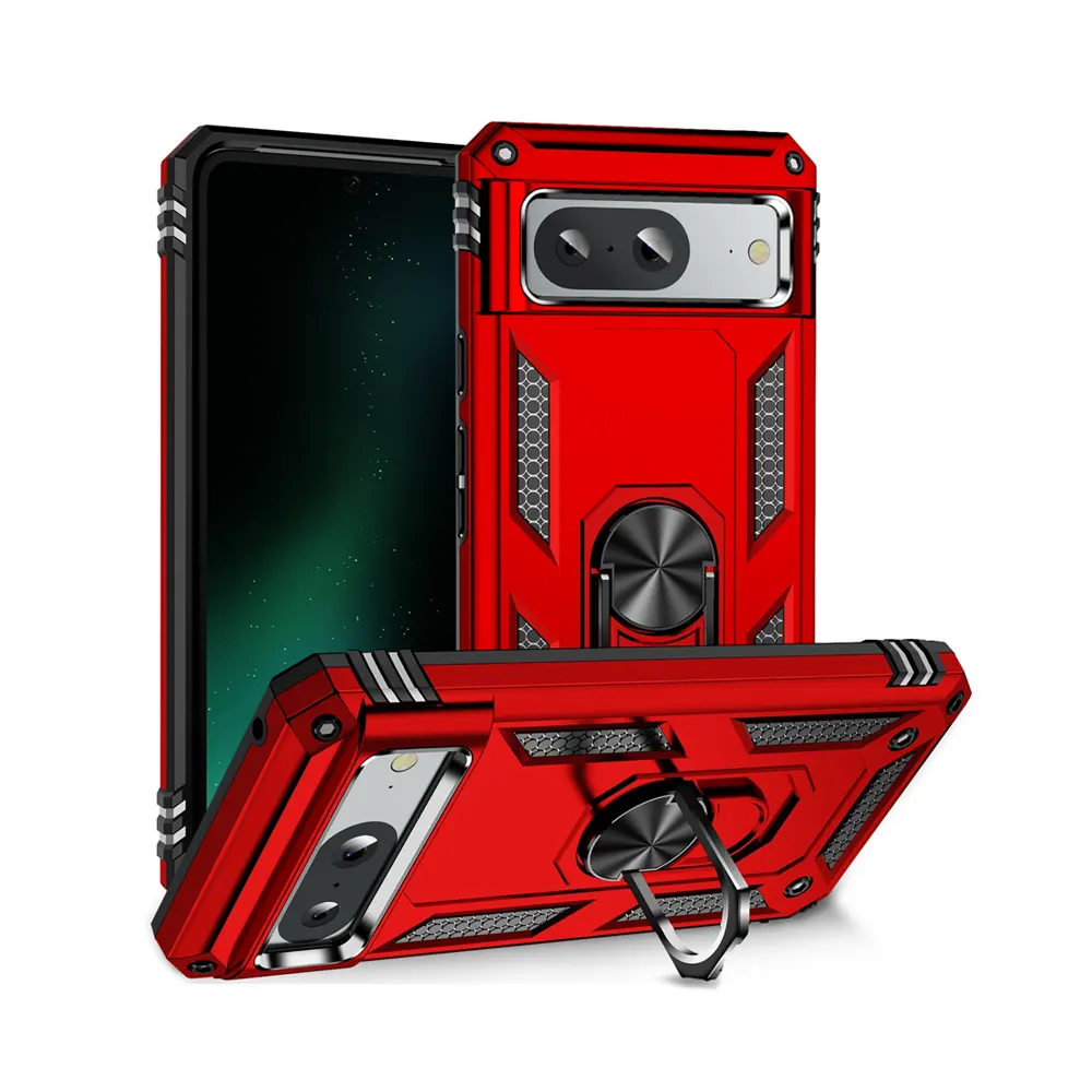 The Slim Shockproof Ring Armor Stand Phone Cover Case for Google Pixel 8 from iShine Trade offers robust protection and functionality. Designed with a rotating ring kickstand, this case ensures your device remains secure while providing hands-free viewing.